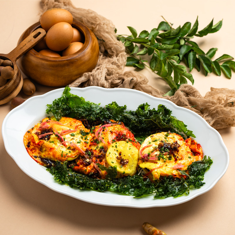 A delicious sunny-side-up egg dish seasoned with a sprinkle of natural turmeric, giving it a distinctive flavor.