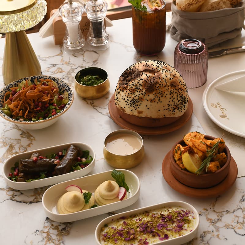 طبق رئيسي : شاورما ارمينية أو خروف محشي، مقبلات باردة: ورق عنب + متبل، سلطة: فتوش، مقبلات حارة: بطاطا حاره، حلى: مهلبيه، مشروب بارد: ايس تي + ماء صغير.